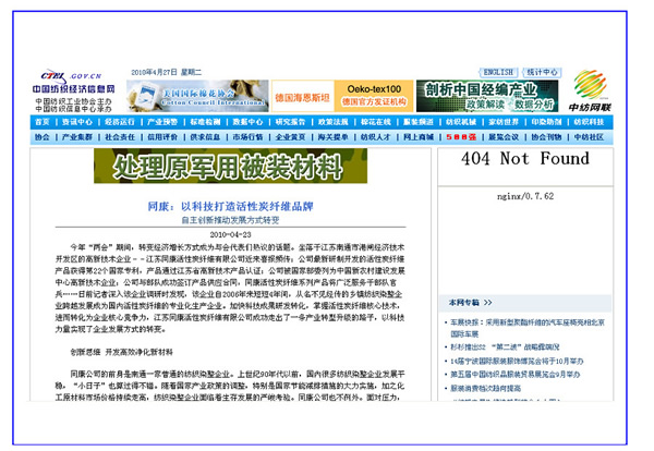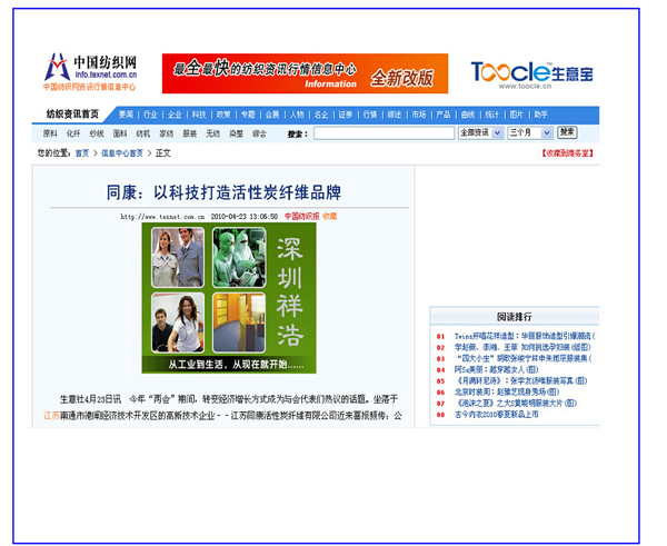 中國紡織經(jīng)濟(jì)信息網(wǎng)、中國紡織網(wǎng)——同康:以科技打造活性碳纖維品牌