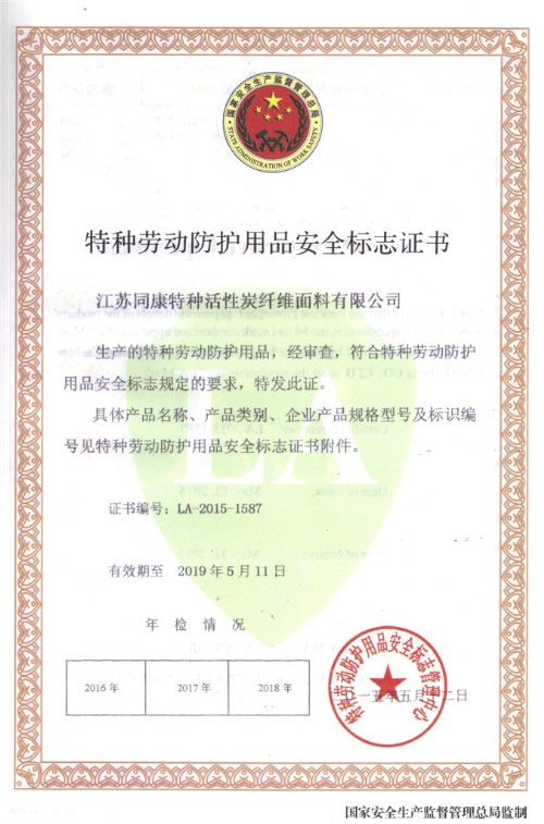 我公司生產的KN95口罩通過了特種勞動防護用品安全管理中心的嚴格審核,并獲得特種勞動防護用品安全標志證書。