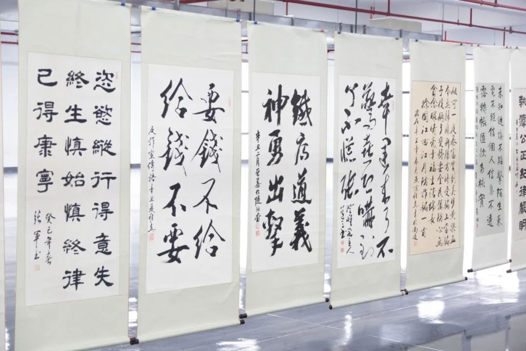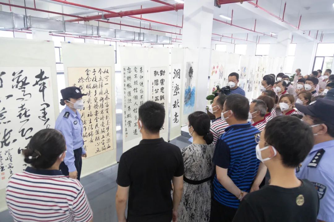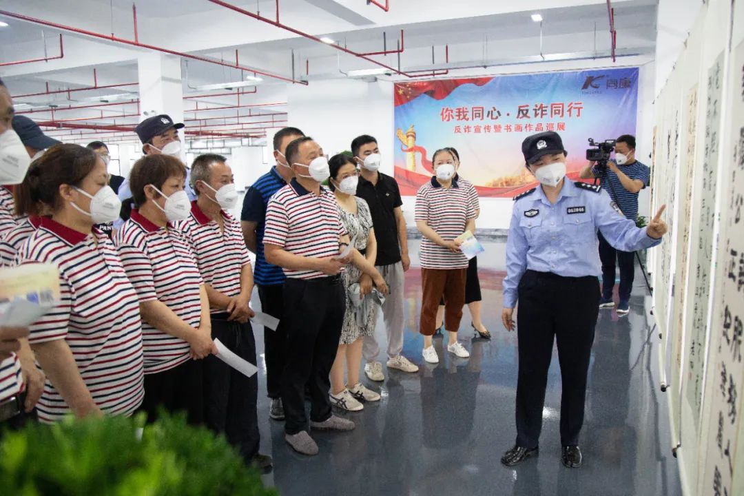 反詐宣傳過后,民警與企業(yè)員工共同參觀反詐宣傳書畫展。本次書畫展的作品涉及書法、水彩等多種形式,共計30余件,由南通市書畫界專業(yè)人士、社會各界書畫愛好者創(chuàng)作。將反詐主題詮釋得淋漓盡致的文化作品,讓本次活動取得了良好的宣傳效果。